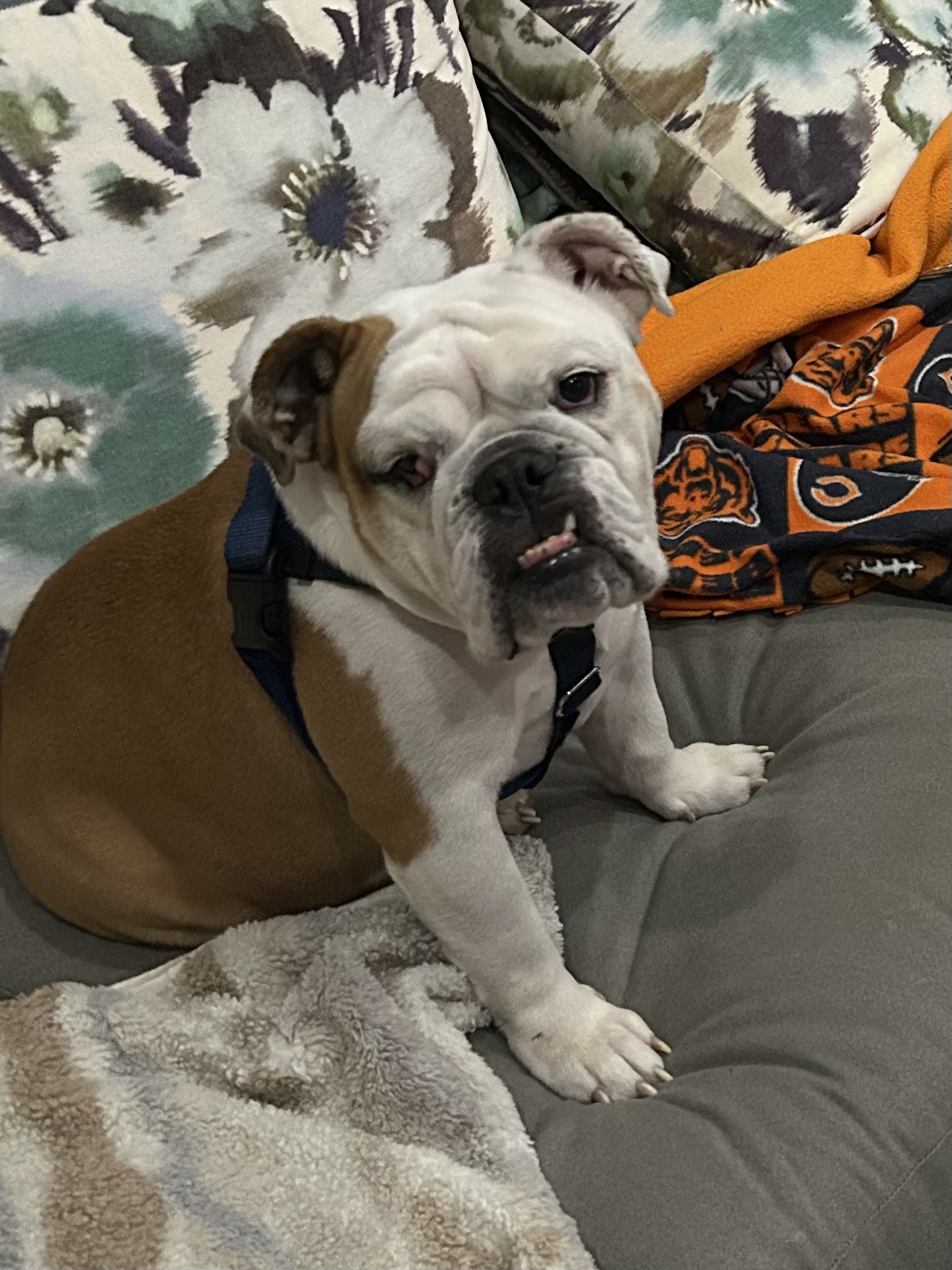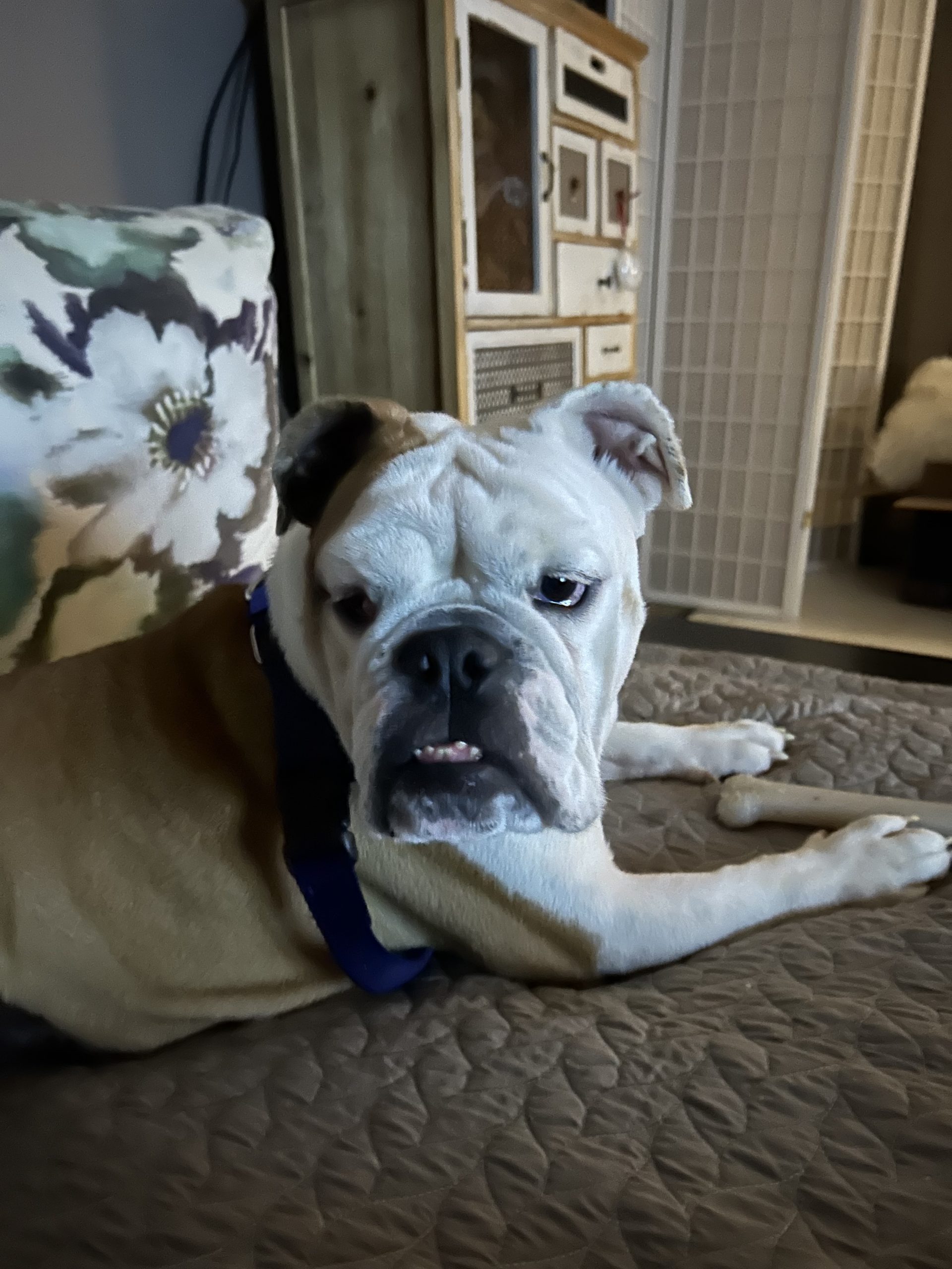 I’ve been practicing walking on a leash, and I have to say, I move pretty fast for a bulldog! Now that the weather is cold, though, I’m thinking I might be more of a cozy indoor guy. I know I’m supposed to go potty outside, but… sometimes I just don’t feel like it. I’m trying, I promise!