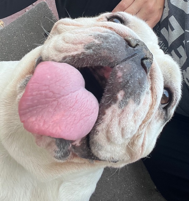 So, if you’re looking for a loyal little bulldog with a big personality, an even bigger heart, and a smile that’ll melt you — I’m your girl.