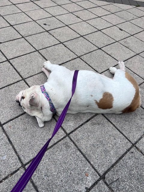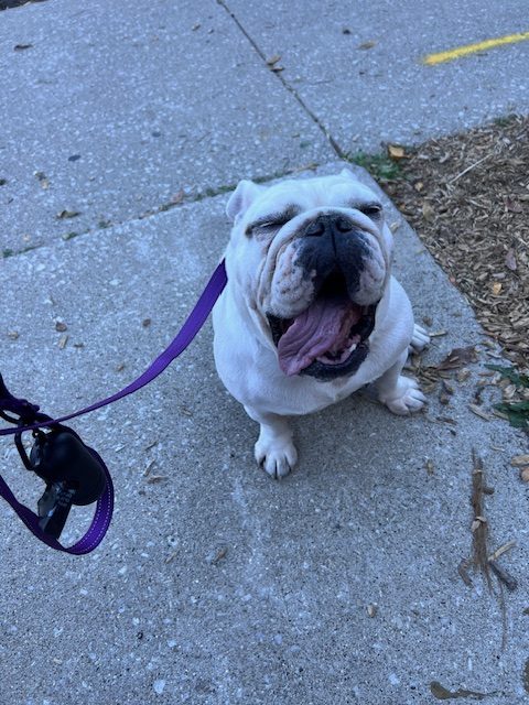Well, hello there! I’m Miss Betsy. Your soon-to-be best friend, personal shadow, and professional cuddle consultant. I’m a 2-to-3-year-old English Bulldog who’s traded in my tough-girl days on the streets for the cozy life of the West Loop. You might say I’ve gone from rags to wags! I’ve got a squishy face, a soft heart, and a serious love for snacks.