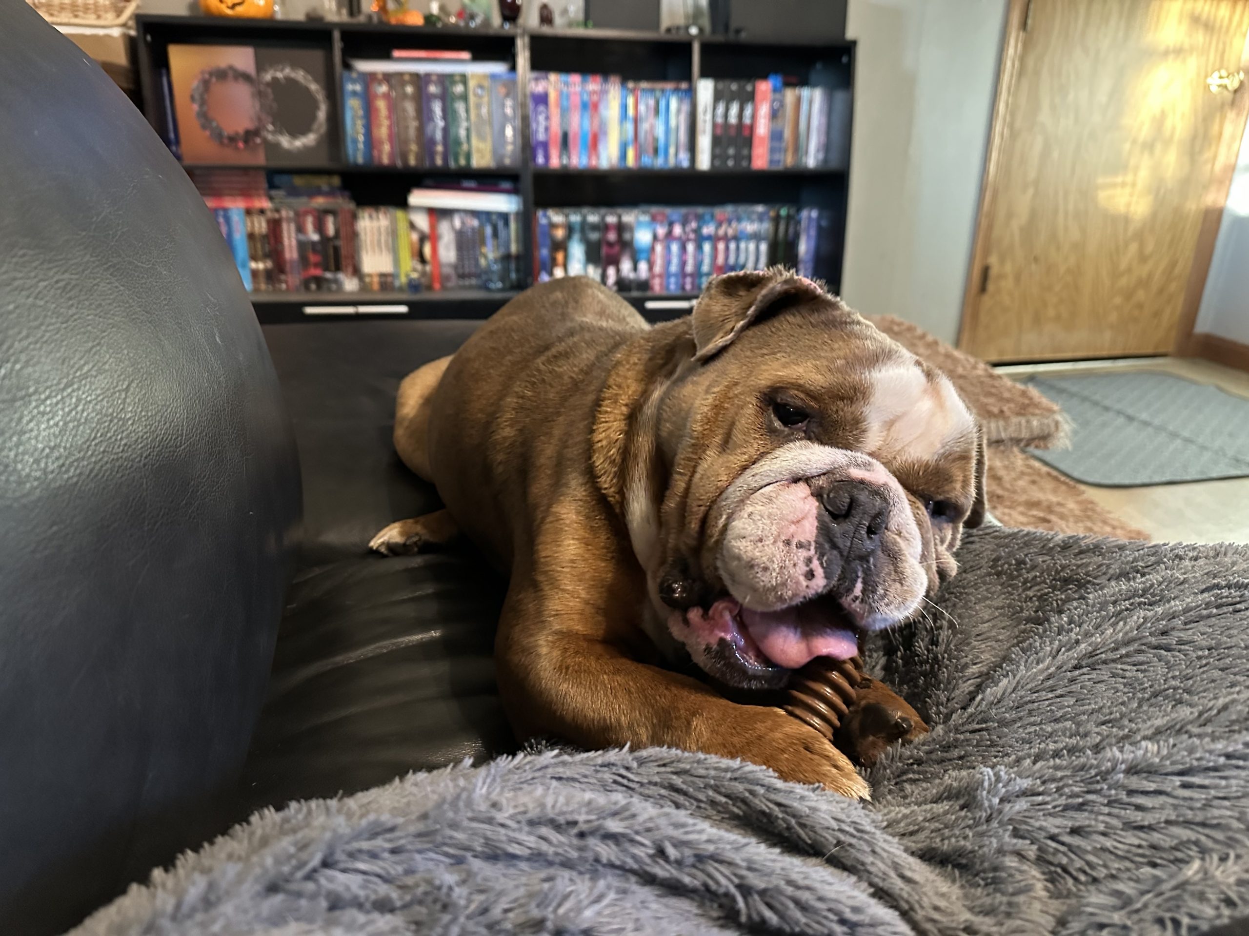 Let’s talk about my favorite things—because every young bandit’s got a stash! First up: puzzle toys and nylabones. Give me a puzzle to crack or a bone to gnaw, and I’ll be busy for ages, showing off my clever side. When I’m not solving mysteries, I’m all about the snuggles. I’ll curl up next to you any chance I get. Lap, couch, floor, you name it!