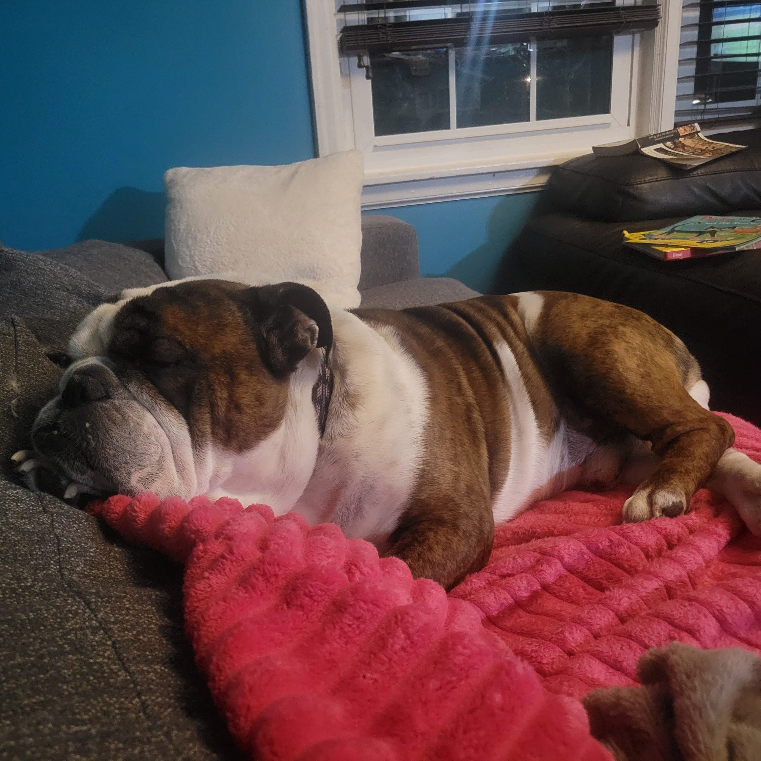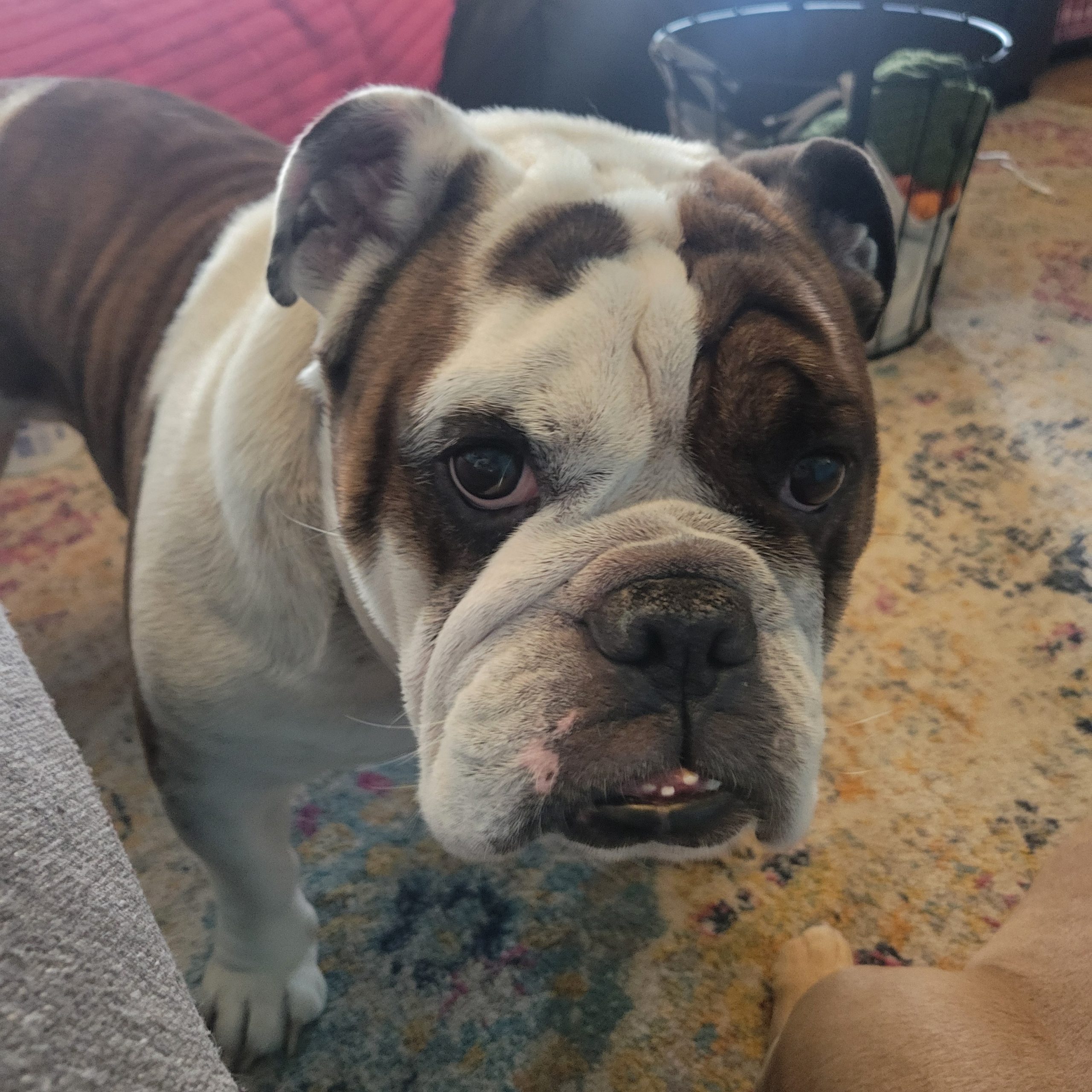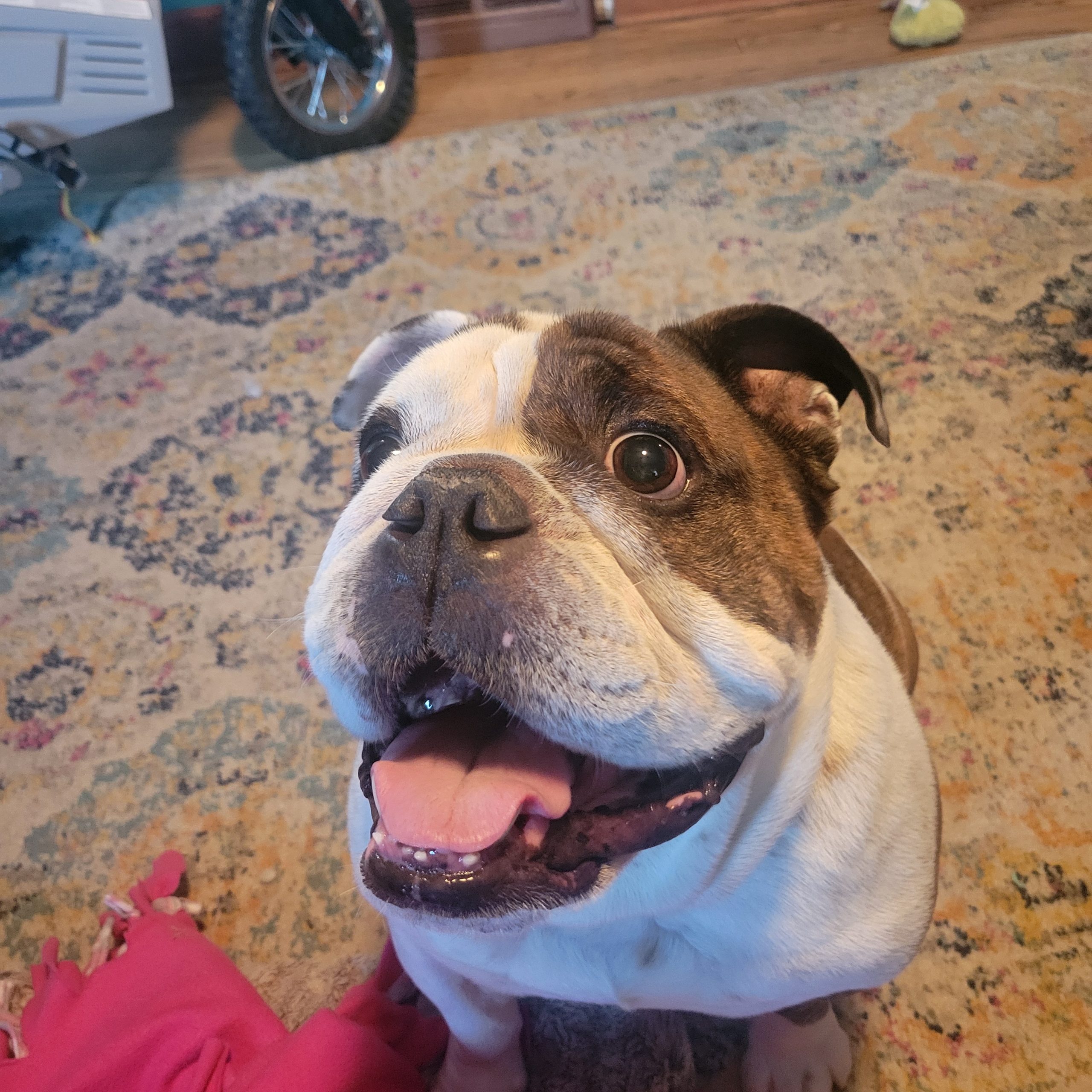 Hi! My name is Porky and everyone who meets me says that same thing, “What a good boy! What a very good boy!” It’s true. I have wonderful manners thanks to my first family, who loved and cared for me for almost 8 years. I’m an English Bulldog guy who walks wonderfully on a leash and likes everyone I meet. Kids, dogs, cats, squirrels – it’s all good by me.