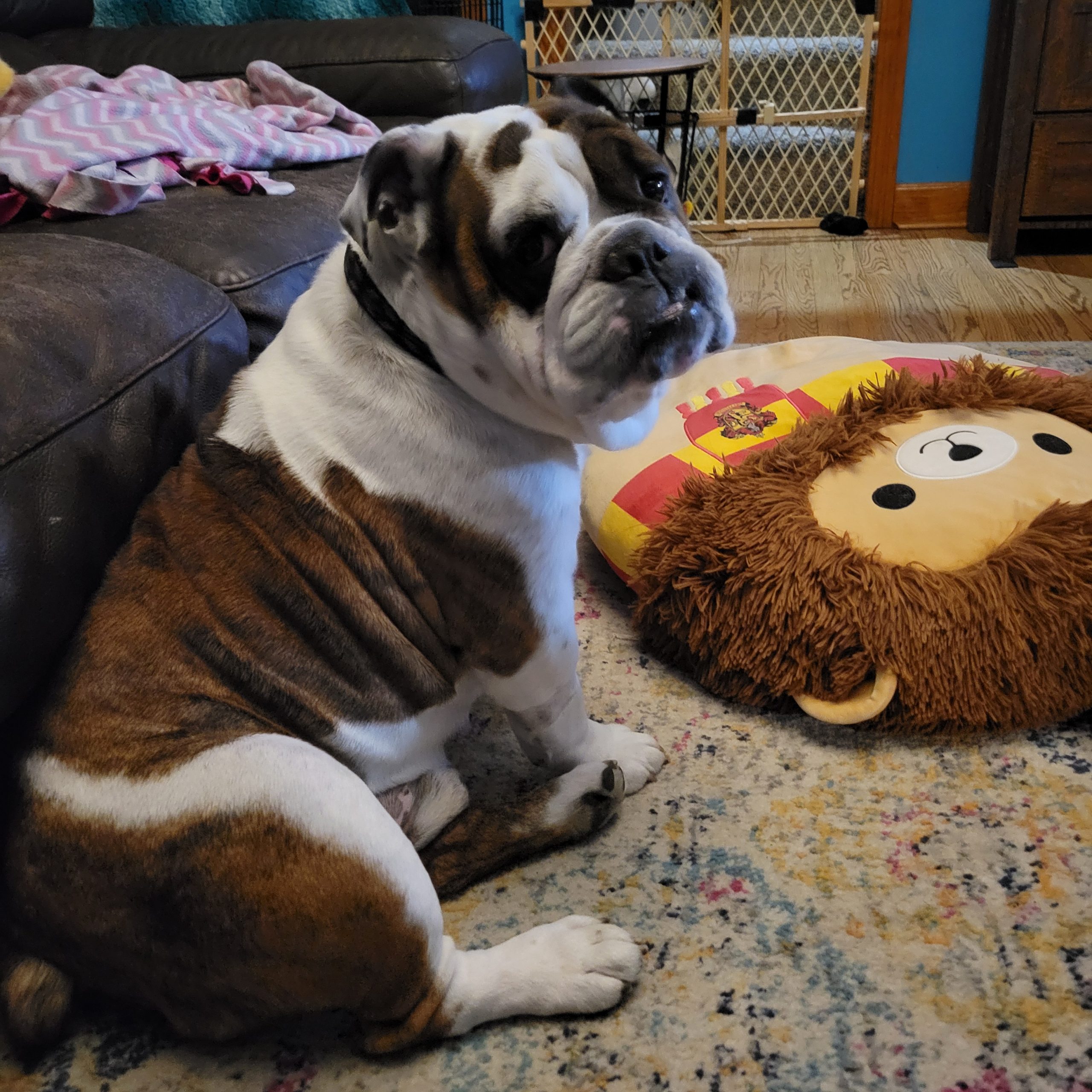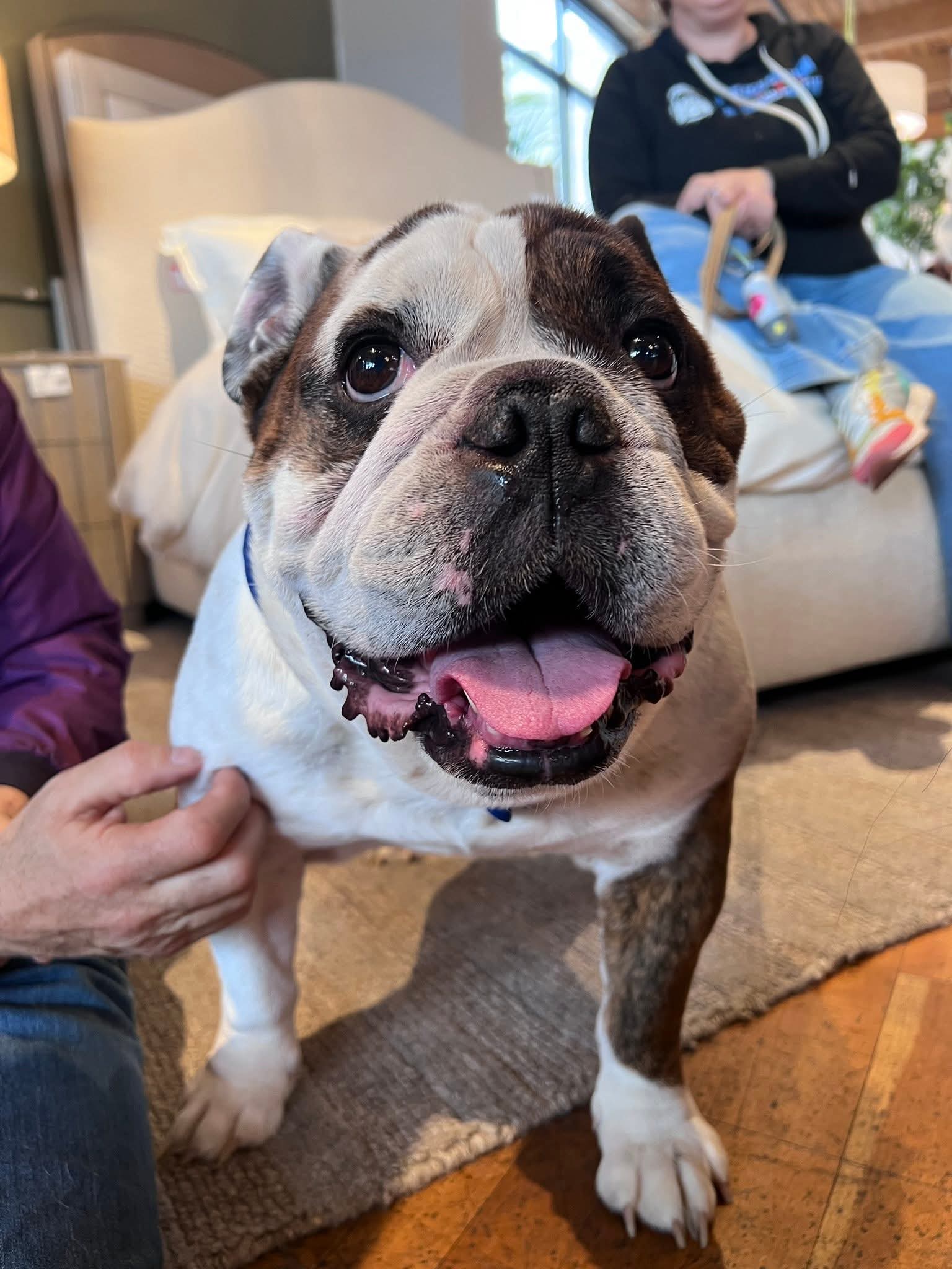 Hi! My name is Porky and everyone who meets me says that same thing, “What a good boy! What a very good boy!” It’s true. I have wonderful manners thanks to my first family, who loved and cared for me for almost 7 years. I’m an English Bulldog guy who walks wonderfully on a leash and likes everyone I meet. Kids, dogs, cats, squirrels – it’s all good by me.