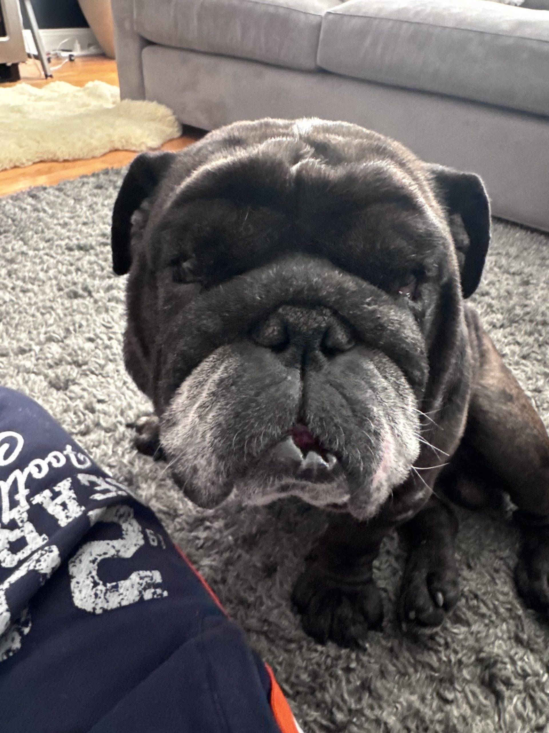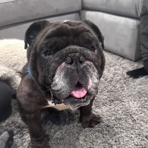 Howdy! I’m Wally, a 3-year-old, 50lb goofy love-bundle who gives kisses freely and loves a good cuddle- aka an English Bulldog! My foster parents say I look like a friendly Walrus, but promise I’m a bully!
