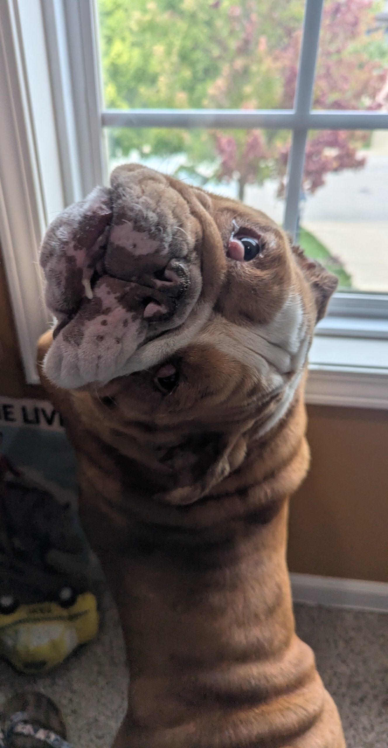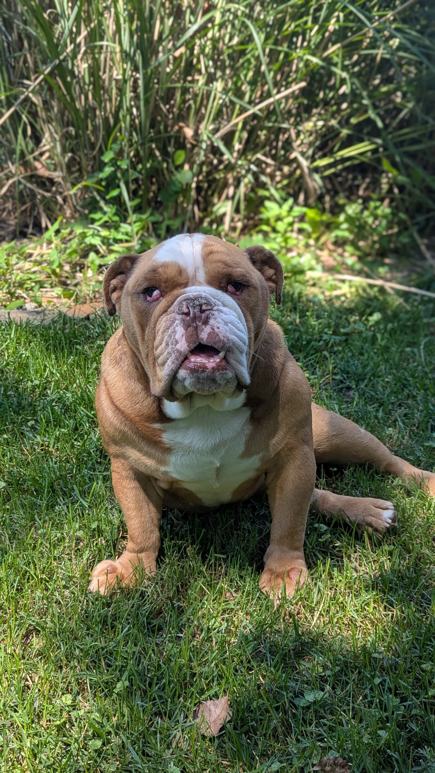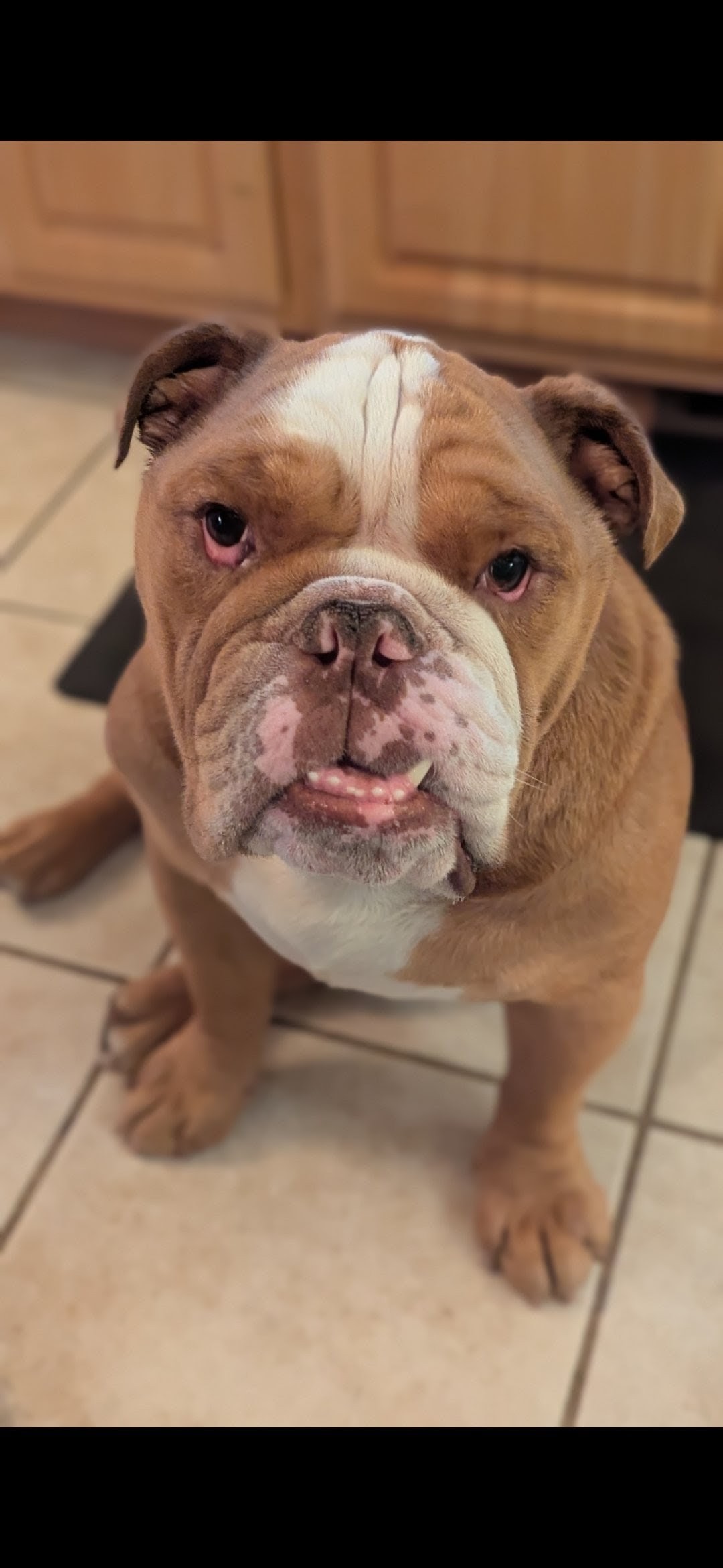 Howdy! My name is Duncan. Wanna be my friend? I’m a 56 pound English Bully boy, and everybody around me says that I’m really handsome. I’m not great at counting, but the humans seem to think that I’m about two years old.