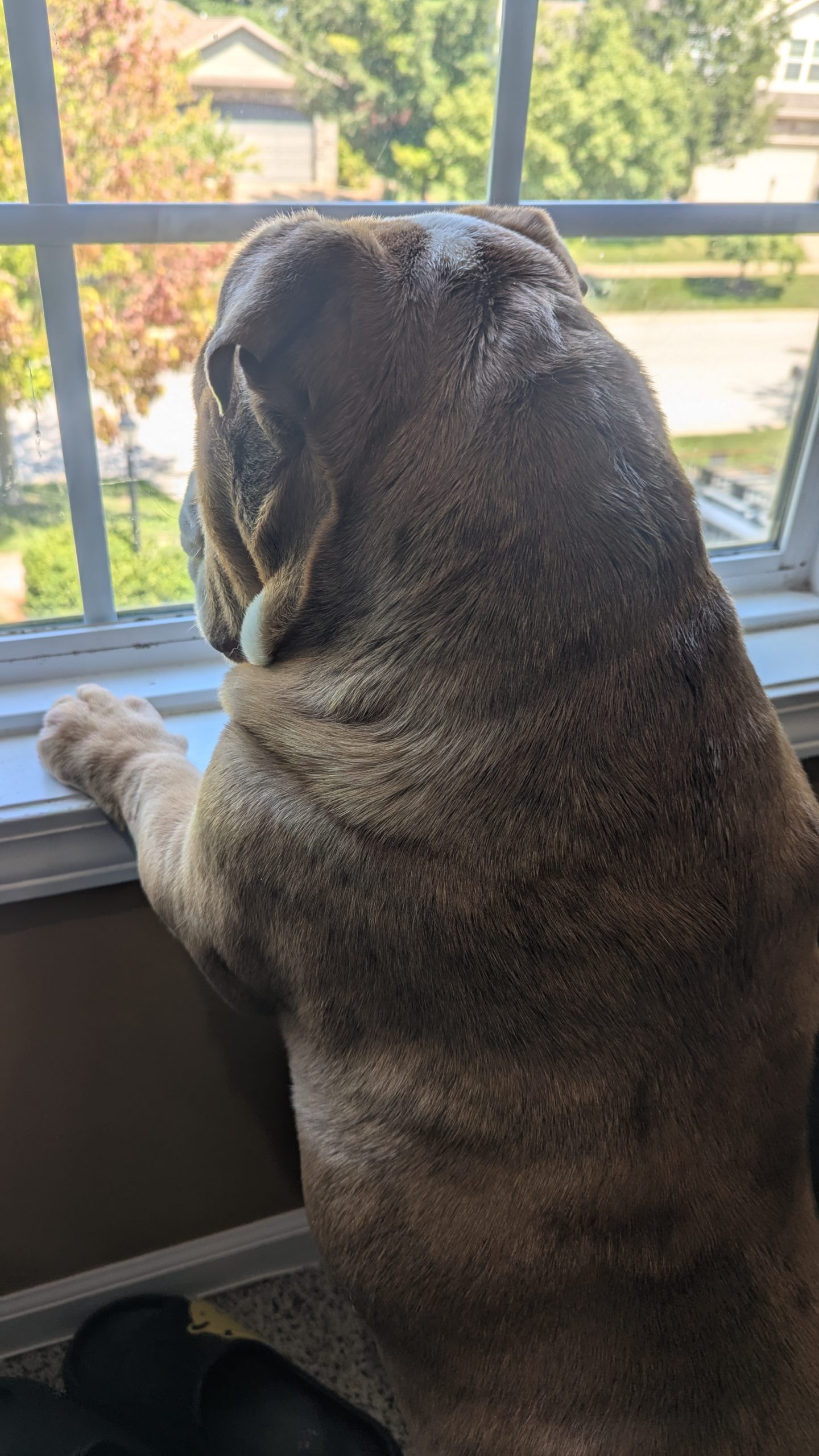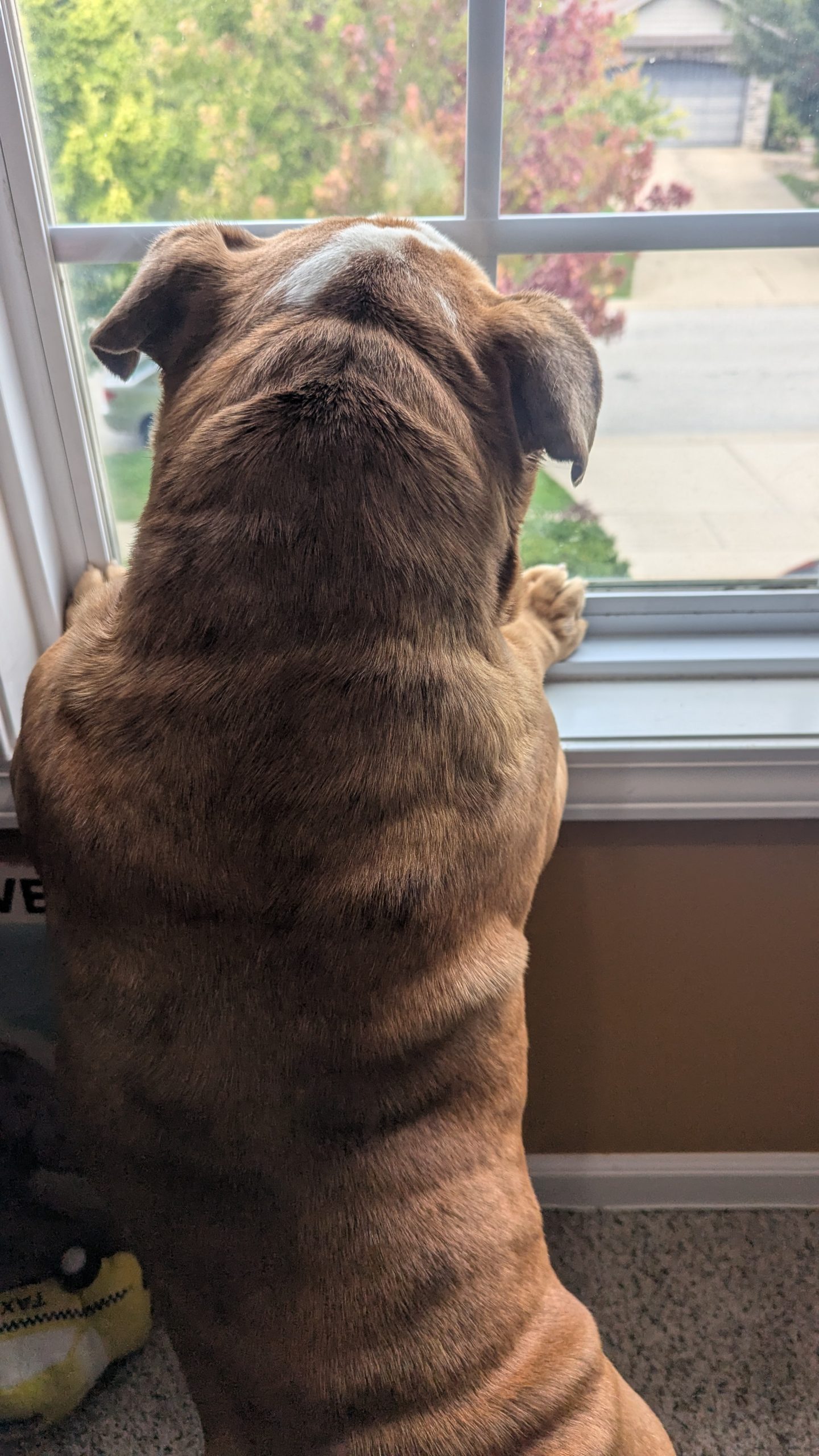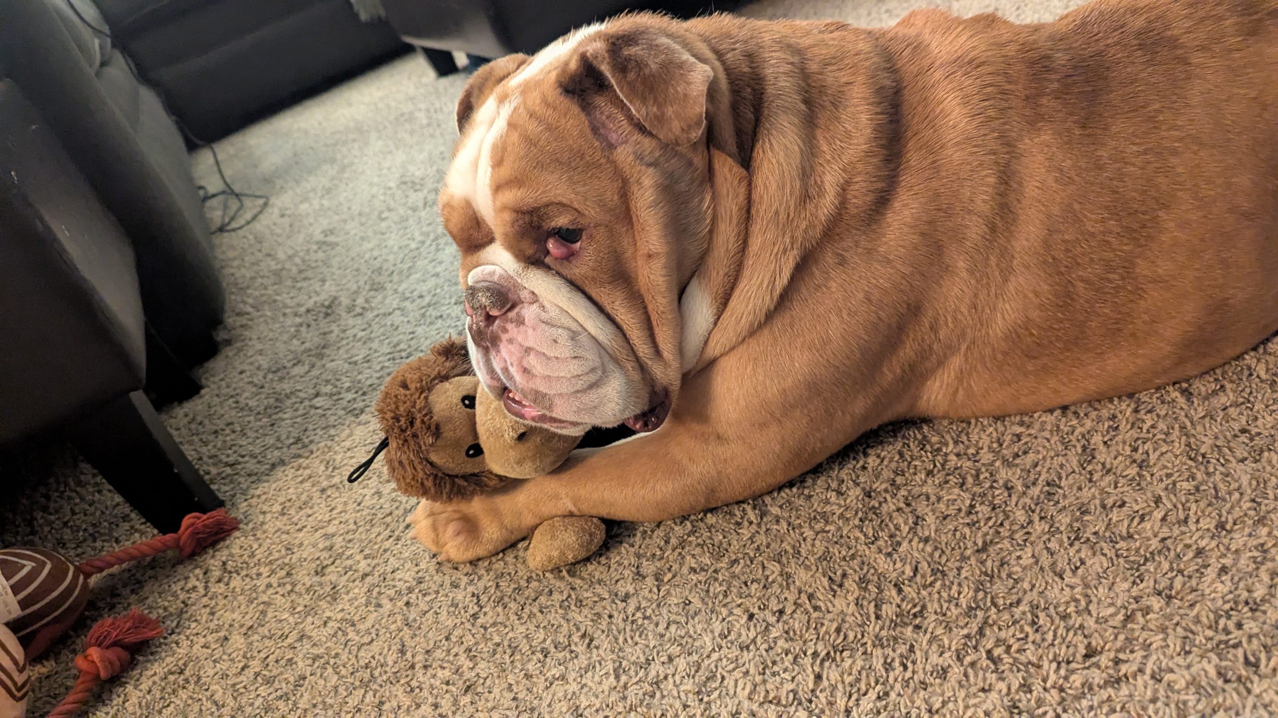 Howdy! My name is Duncan. Wanna be my friend? I’m a 56 pound English Bully boy, and everybody around me says that I’m really handsome. I’m not great at counting, but the humans seem to think that I’m about two years old.