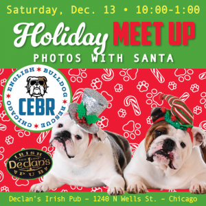 Join CEBR for our annual holiday fun!! Hosted by our favorite Declan’s Irish Pub in Old Town in downtown Chicago, this event is a human AND pet friendly event. Bring your bully for photos with Santa. We will have dog cookies, crafts and fun for all.
