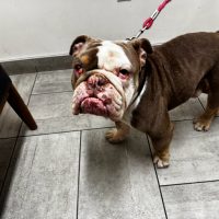 9-year-old male English Bulldog. Affectionate and playful, loves cuddling. Great companion for cozy adventures! House trained. Untested with dogs. 3-year-old male English Bulldog. Loves to cuddle and show affection. Working with a trainer on leash manners. Untested with other... 5-year-old male English bulldog. Loves people and is playful and affectionate. Has the cutest tongue you'll ever see. Good with...